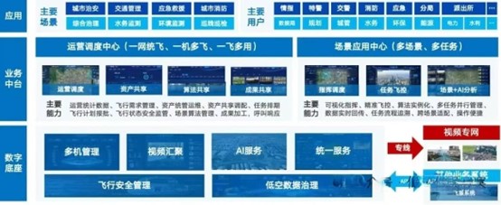城市治理與公共服務(wù)以政務(wù)“一網(wǎng)統(tǒng)飛”平臺為核心,旨在解決各部門無人機(jī)應(yīng)用“多頭建設(shè)、資源分散、資產(chǎn)閑置”的問題。該平臺由政府主導(dǎo)建設(shè),采用“前端統(tǒng)設(shè)備、中端統(tǒng)需求、后端統(tǒng)數(shù)據(jù)”的三層統(tǒng)管模式,整合分散的無人機(jī)資源與數(shù)據(jù),實現(xiàn)跨部門協(xié)同調(diào)度與高效治理,探索“一網(wǎng)統(tǒng)飛、智慧高效”的城市治理新模式。